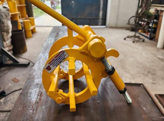 • Precision fitted hydraulic line up clamps to insure proper alignment and quick clamping with a convenient hand lever and hydraulic jack for quick line-up of the pipe.